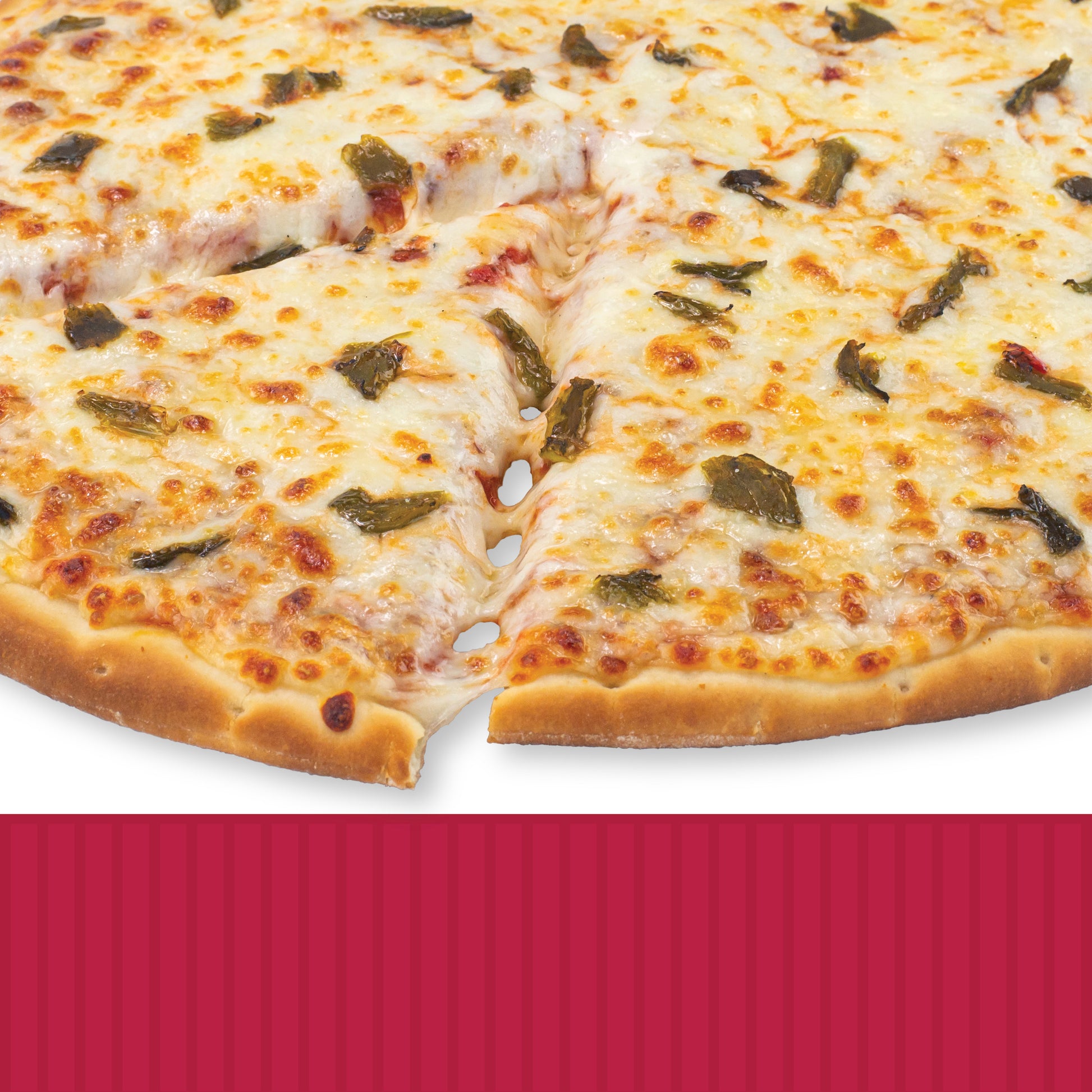 TOPPINGS INGREDIENTS: Low Moisture Part Skim Mozzarella Cheese (Pasteurized Part Skim Milk, Cheese Cultures, Salt*, Enzymes), Hatch Green Chile, Provolone Cheese (Pasteurized Milk, Cheese Cultures, Salt*, Enzymes), Parmesan Cheese (Pasteurized Part Skim Milk, Cheese Cultures, Salt*, Enzymes), Romano Cheese (Pasteurized Part-Skim Cow’s Milk, Cheese Culture, Salt*, Enzymes)